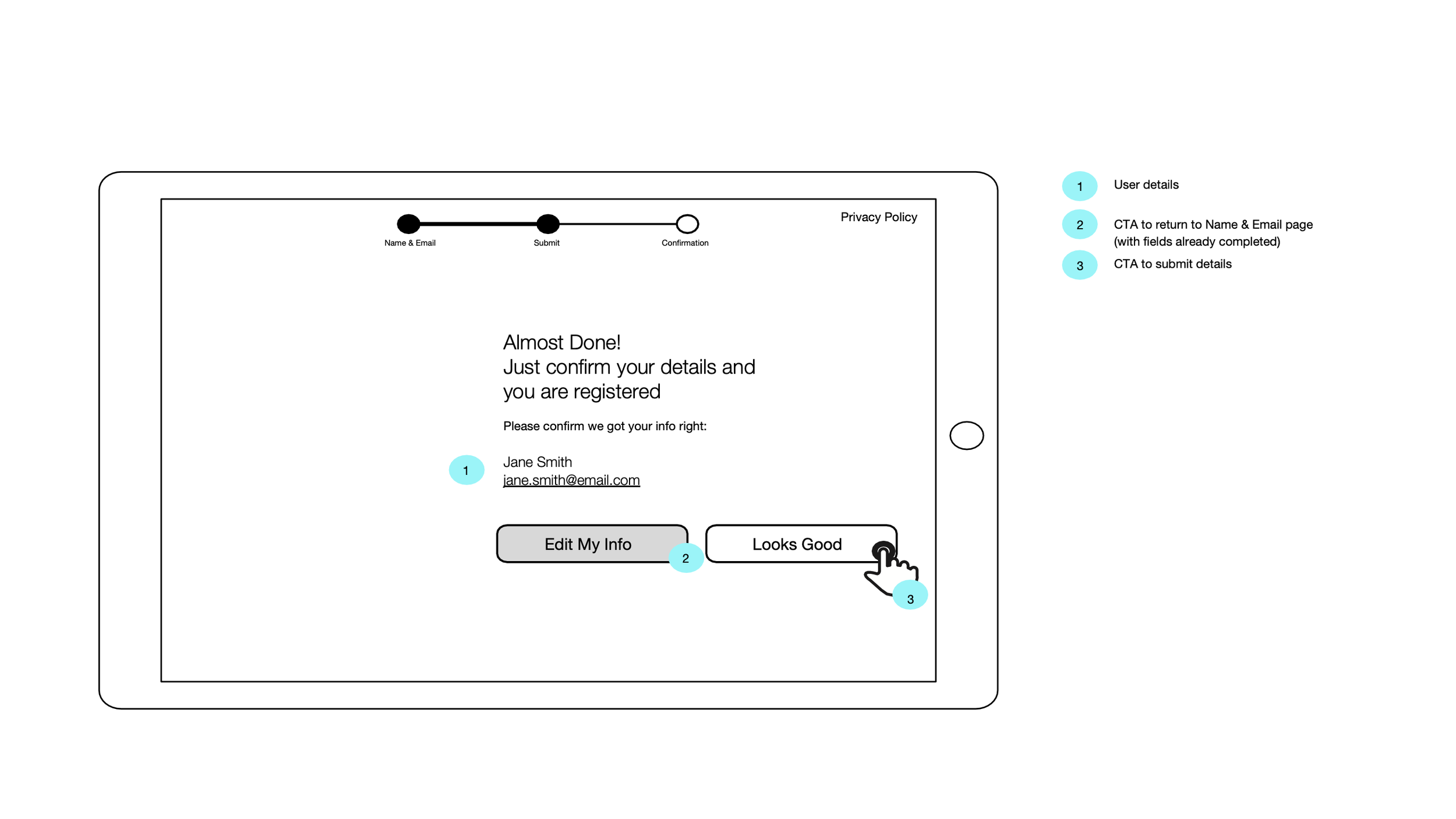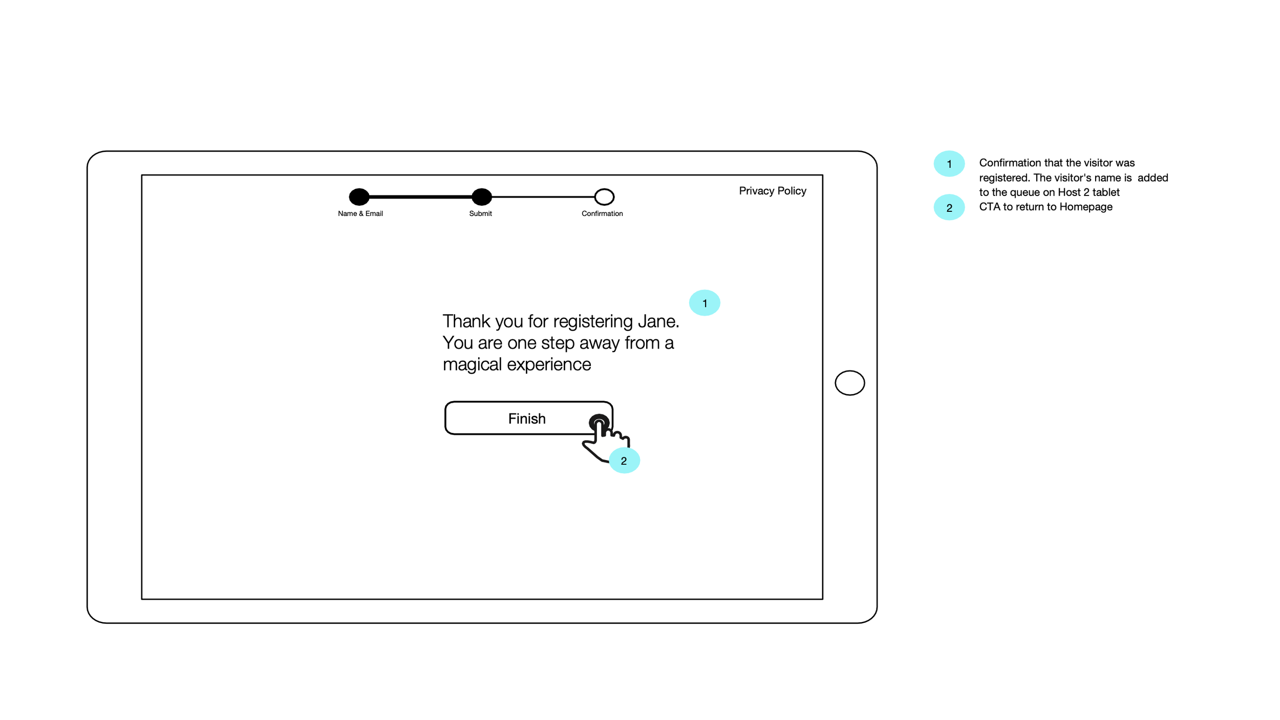 I created wireframes for a tablet-based system for hosts to able to register guests and have real-time updates of the other tablets in the network about guests in the queue.
